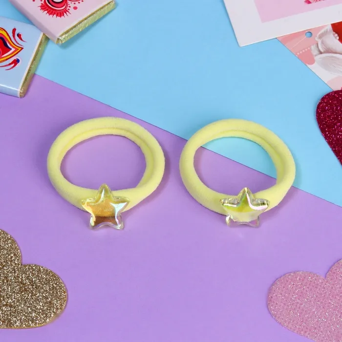 Резинки для волос «Мелодия», набор 2 шт., звезда, 3.5 см, жёлтые