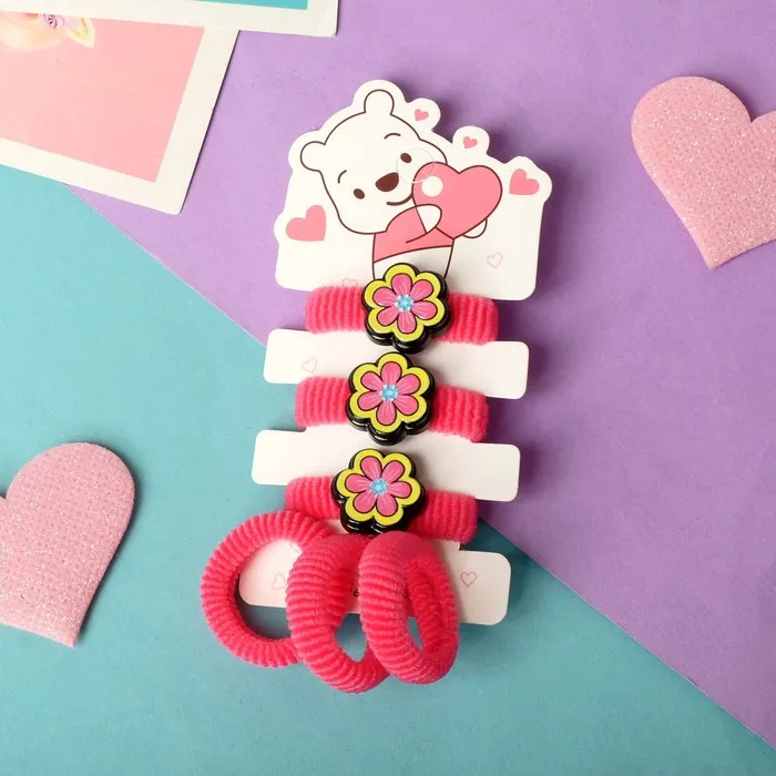 Резинки для волос «Мишутка», набор 6 шт., цветочек, малиновый — Характеристики