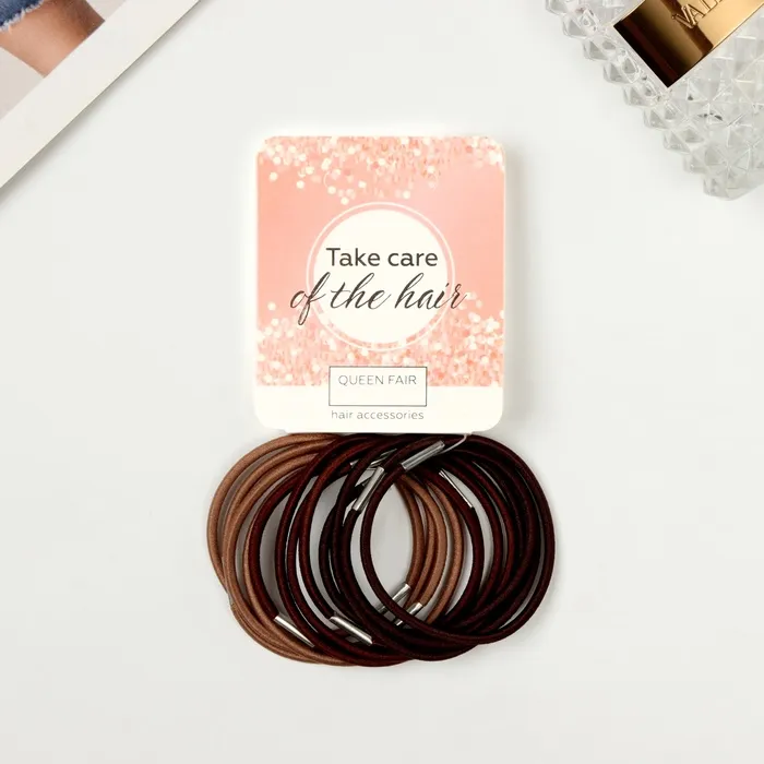 Резинки для волос "Мокко" (набор 12 шт) 4 см, коричневый — Характеристики