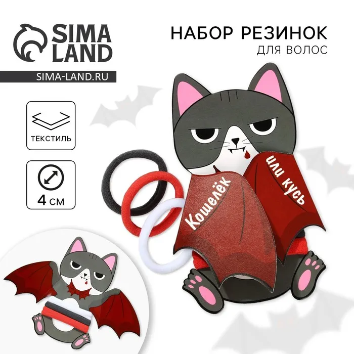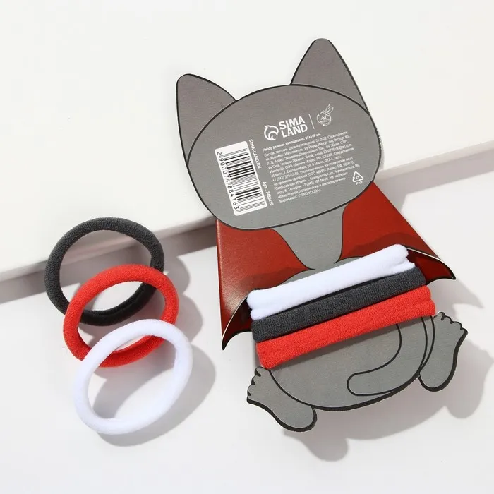 Резинки для волос на Хэллоуин «Кот Дракула», d= 4 см, 3 шт. — Характеристики