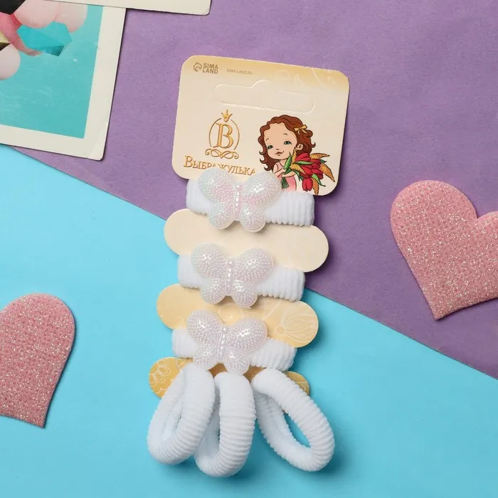 Резинки для волос «Неженка», набор 6 шт., бабочка, белый