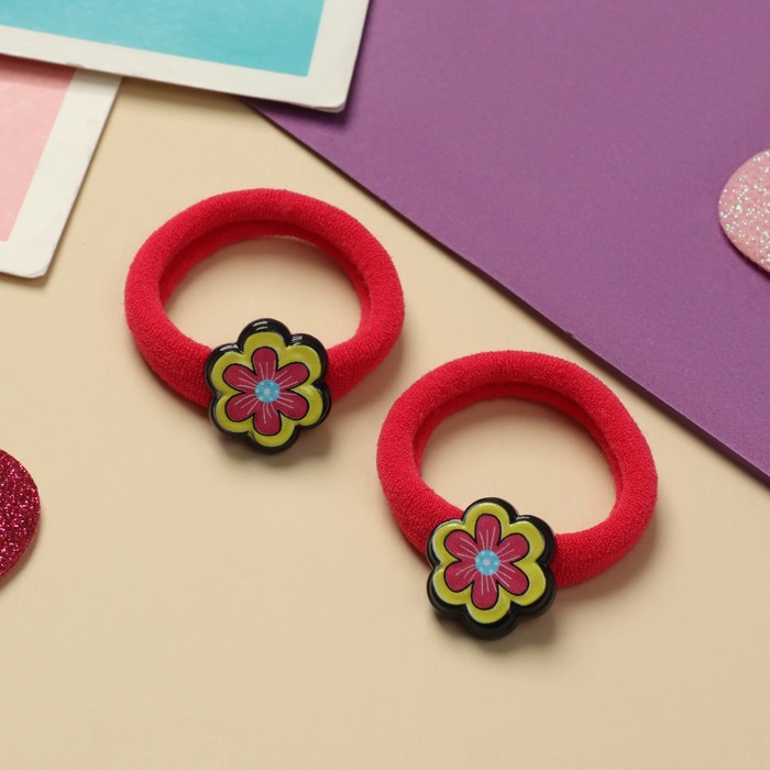 Резинки для волос «Нежность», набор 2 шт., цветочек, 4 см, красный