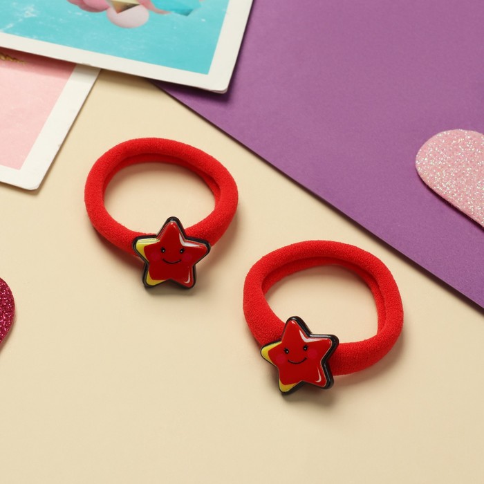 Резинки для волос «Нежность», набор 2 шт., звёздочка, 4 см, красный — Характеристики