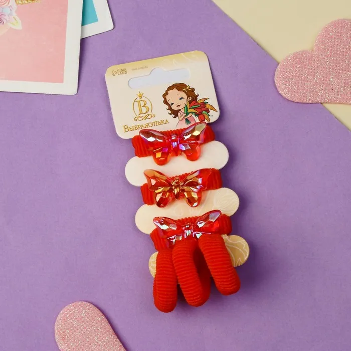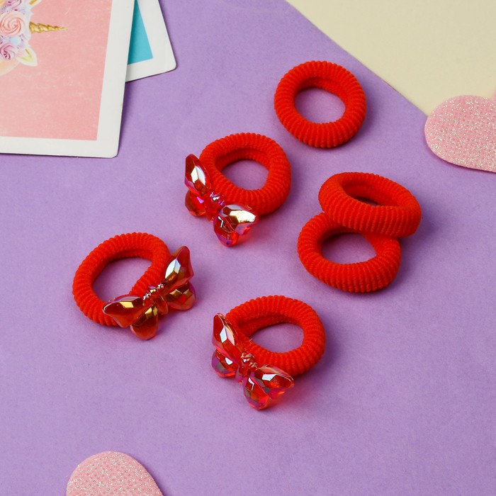 Резинки для волос «Нежность», набор 6 шт., бабочка, красный