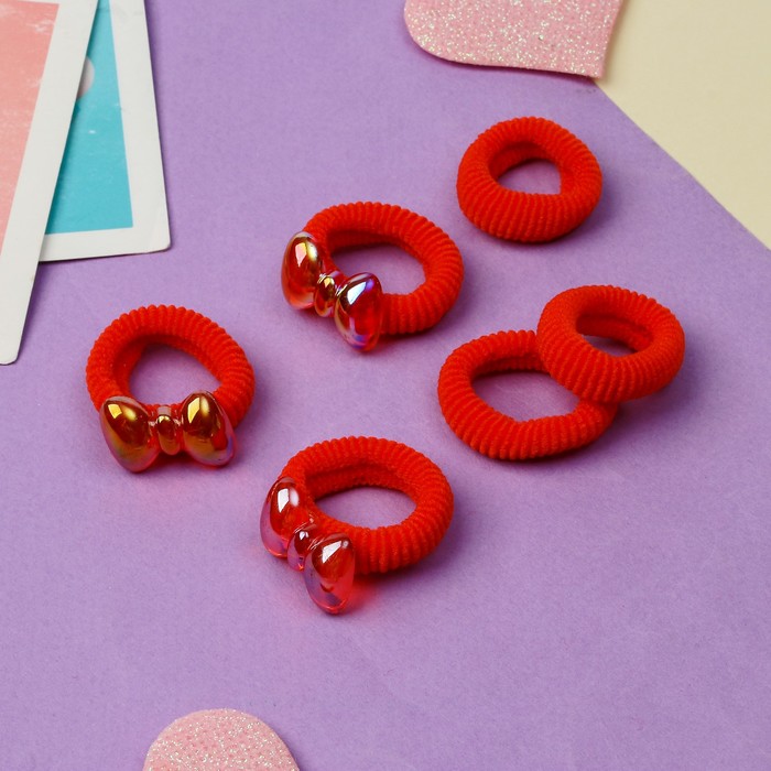 Резинки для волос «Нежность», набор 6 шт., бантик, красный