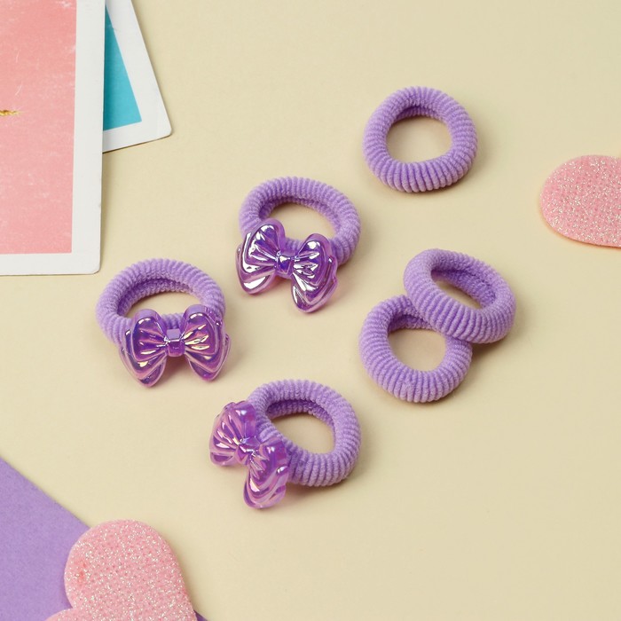 Резинки для волос «Нежность», набор 6 шт., бантик резной, сиреневый