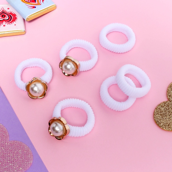 Резинки для волос «Нежность», набор 6 шт., благородный цветок, 2 см, белые