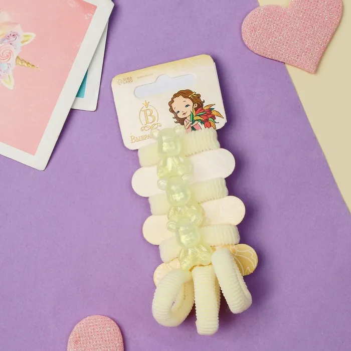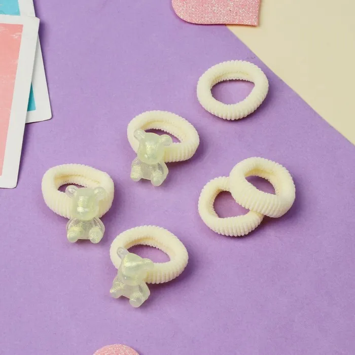 Резинки для волос «Нежность», набор 6 шт., мишка, жёлтый — Характеристики