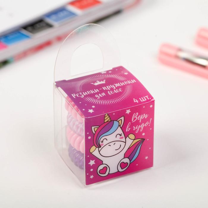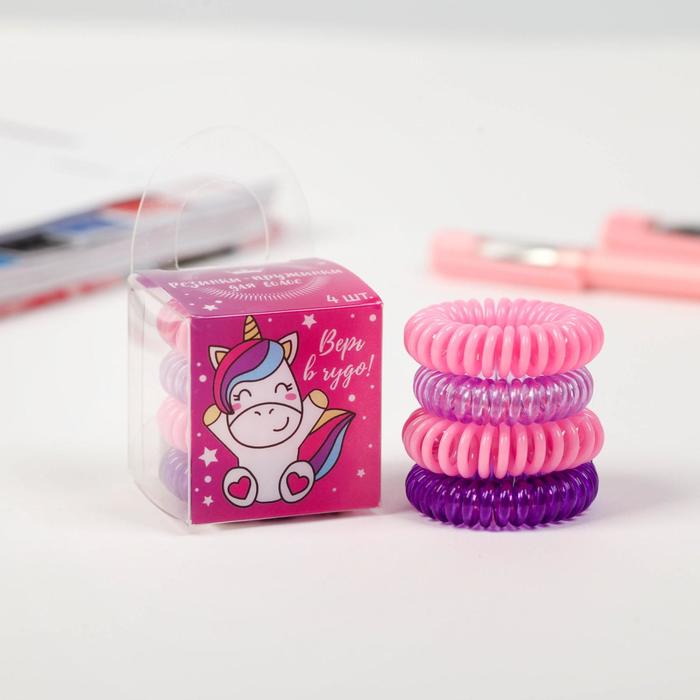 Резинки для волос пружинки «Единорог», 4 шт., диаметр 3.5 см