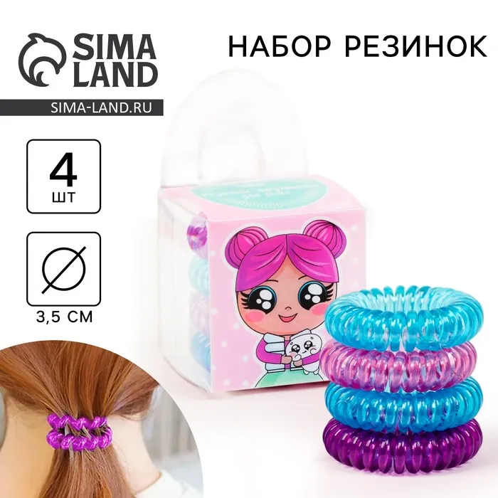 Резинки для волос пружинки «Клэр»,4 шт, диам 3,5 см — Характеристики