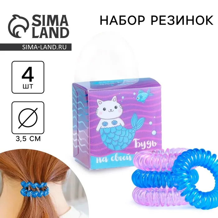 Резинки для волос пружинки «На волне», 4 шт., диам 3.5 см — Характеристики