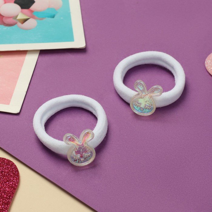 Резинки для волос «Пупсёнок», набор 2 шт., зайчик, 4 см, белые
