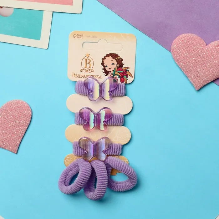 Резинки для волос «Сладость», набор 6 шт., бабочка, сиреневые