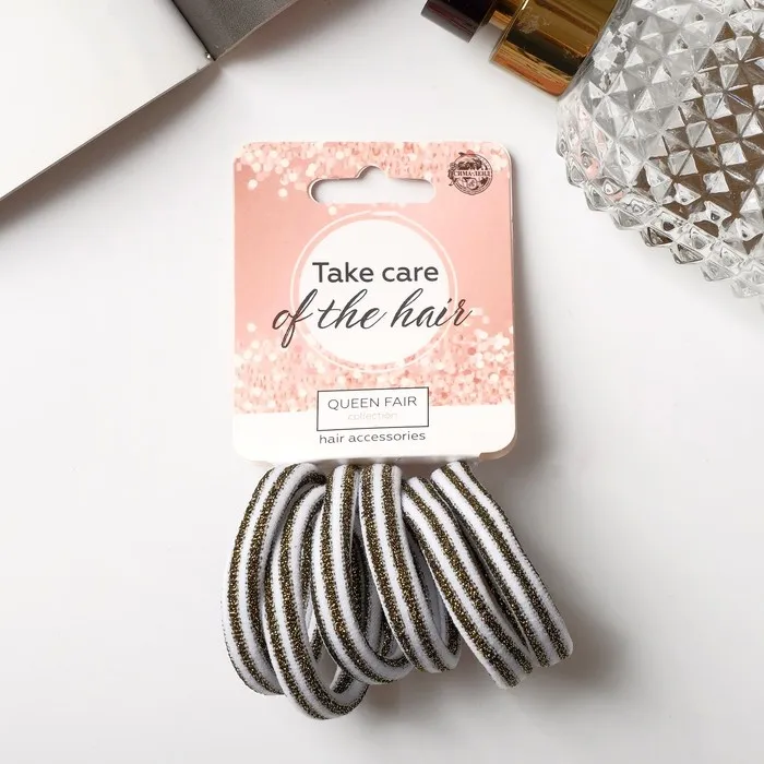 Резинки для волос «Спорт элит», набор 6 шт., полоса, 4 см, золотисто-белые — Характеристики
