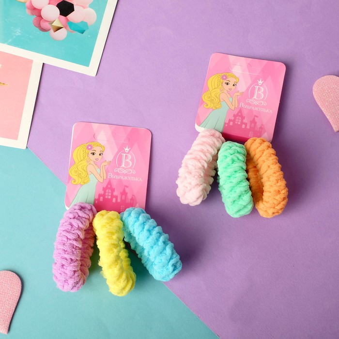 - 3 резинки в наборе: Можно чередовать под настроение или под цвет одежды. В ассортименте – сочные оттенки и принты, которые нравятся детям.