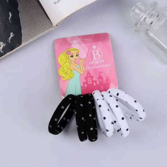 Резинки для волос «Спорт», набор 6 шт., горох, 3.8 см, чёрные, белые — Характеристики