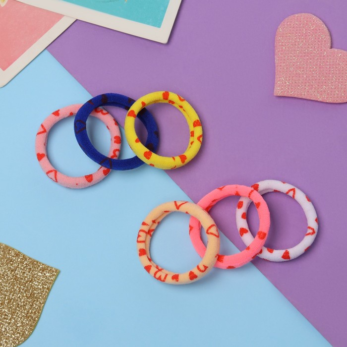 Резинки для волос «Спорт принт», набор 6 шт., сердечки, 4 см