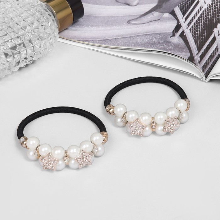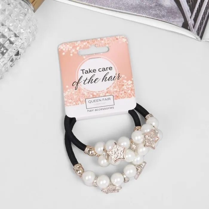 Эти эластичные резинки со звёздами и жемчугом станут изящным завершением вашего повседневного образа. Они надежно удерживают волосы, не спутывая и не повреждая их, даря ощущение комфорта в течение всего дня. Набор из двух штук в классической цветовой гамме подчеркнёт ваш уникальный стиль.