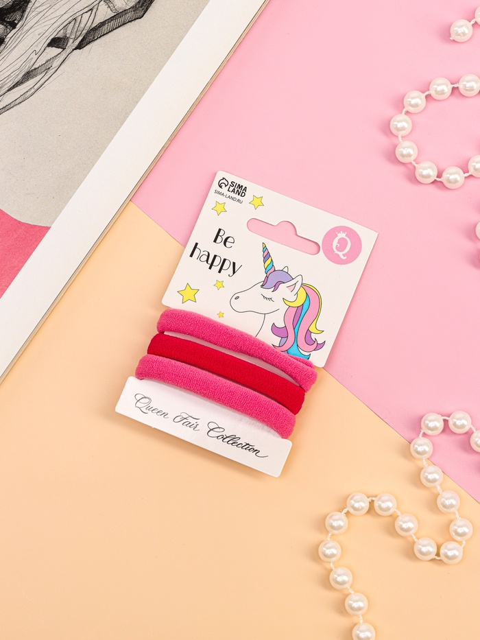 Резинки для волос «Трио», набор 3 шт., единорог, 5.5 см, розовые — Характеристики
