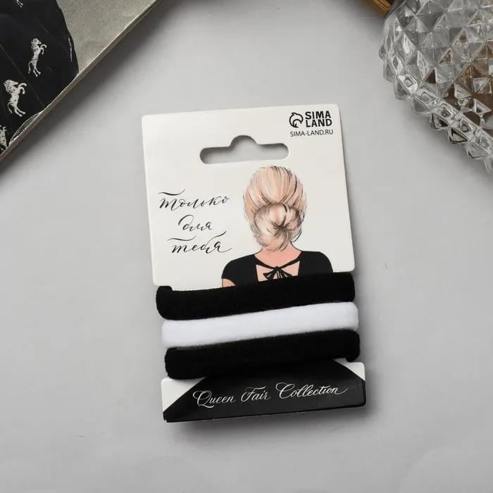 Резинки для волос «Трио», набор 3 шт., классика, 5.5 см, чёрно-белые — Характеристики
