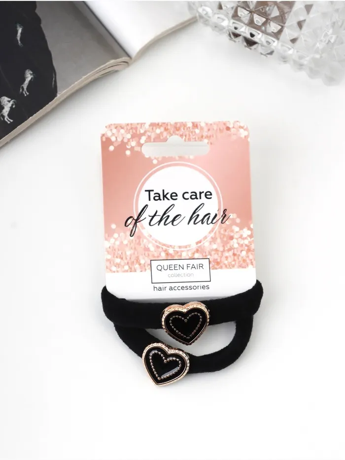 Резинки для волос «Ванесса», набор 2 шт., сердце, 3.5 см, чёрные