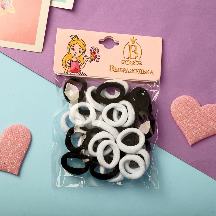 Резинки для волос «Выбражулька», набор 30 +-1 шт., d=1.4 см, ассорти, чёрно-белые — Характеристики