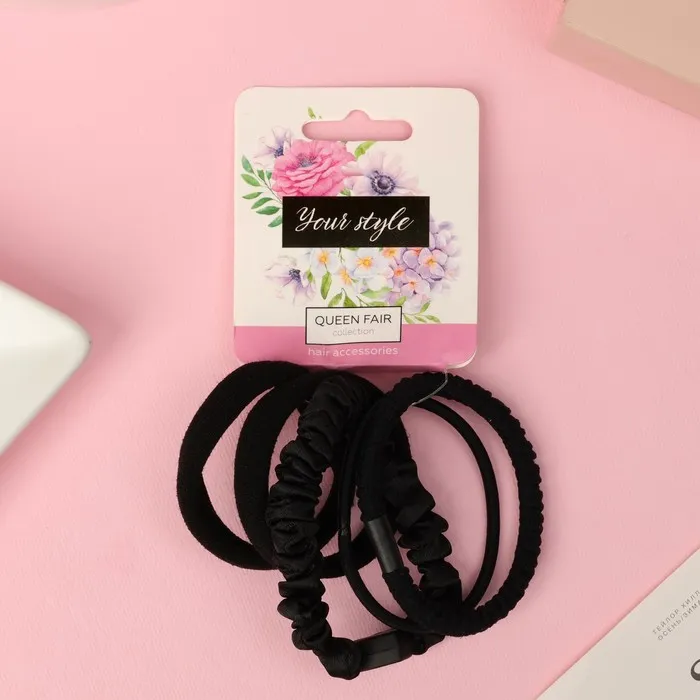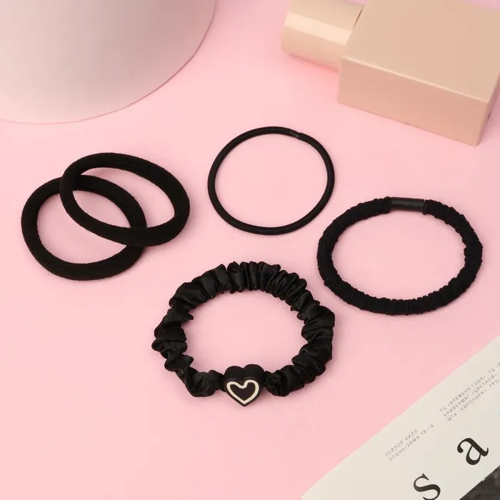 Резинки для волос «Жанет», набор 5 шт., жатка сердце, 5 см, чёрные — Характеристики
