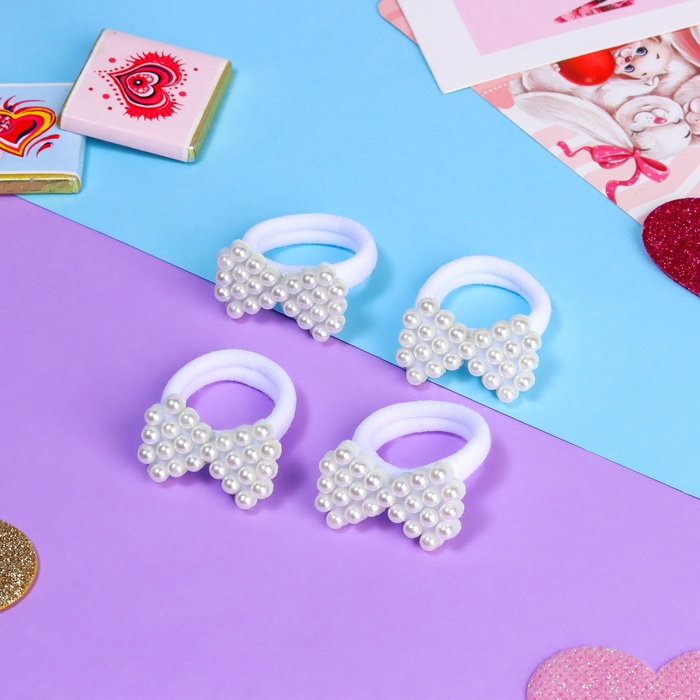 Резинки для волос «Жемчужная», набор 4 шт., бантики, белые