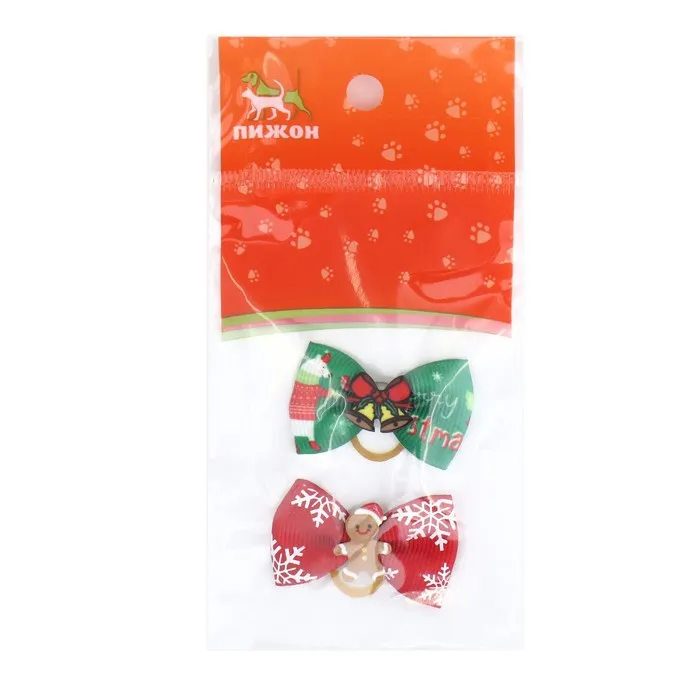 Новогодний набор бантиков-резинок "Колокольчик и Пряня" - великолепное украшение для собачки. Множество цветовых гамм позволит подобрать бантик под любой наряд, который есть у вашего любимца. Такое украшение подойдет любой маленькой породе, главное длинношерстной. С помощью бантиков Вы можете легко и просто создать непревзойденный имидж питомца, сделать настоящего модника и просто упростить уход за шерсткой собачки - красиво и правильно уложить челку. Бантики выполнены из репсовых лент с добавлением новогоднего декора. Основа выполнена из качественного, прочного материала, который хорошо тянется. Резинки для собаки украсят Вашего питомца, создадут новогоднее настроение и не оставят никого равнодушным.