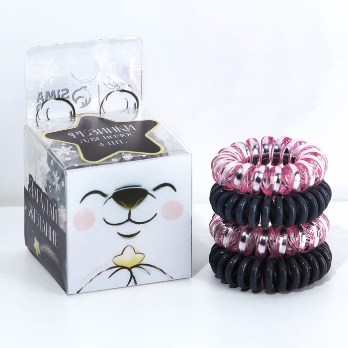 Резинки пружинки для волос новогодние «Загадай желание», набор 4 шт, d = 3,5 см — Характеристики