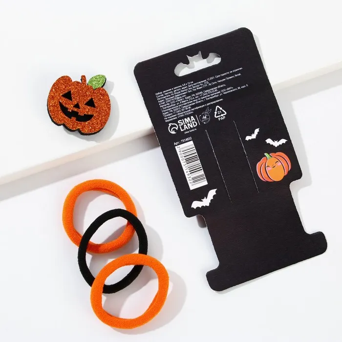 Набор резинок отлично украсит и надёжно зафиксирует любую прическу,а заколка идущая в копмлекте дополнят образ для хэллоуина или разнообразят повседневный. Подойдёт в качестве подарка дочке, внучке, сестре или подруге. В набор для девочки входит: резинки для волос - 3 шт. и заколка.