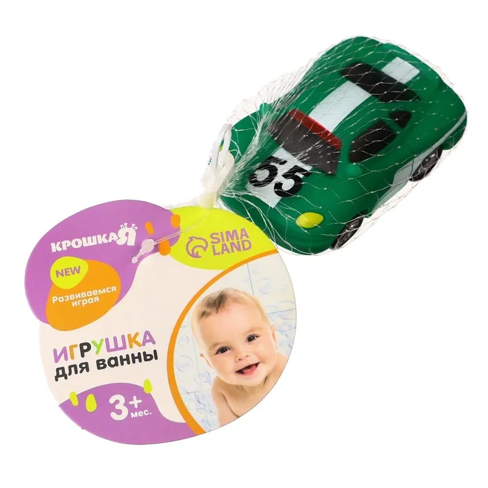 Резиновая игрушка для ванны Крошка Я «Гоночная машинка», 8 см, виды МИКС — Характеристики