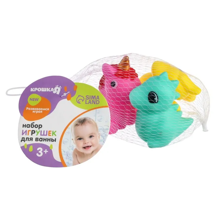 Резиновые игрушки для ванны Крошка Я «Динозаврики», с пищалкой, в наборе 3 шт. — Характеристики