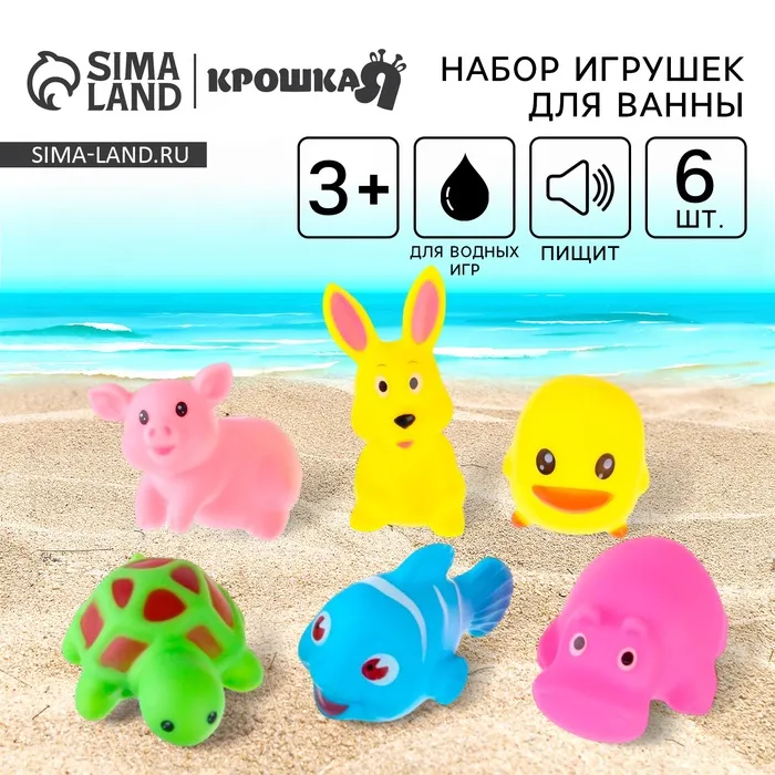 Резиновые игрушки для ванны Крошка Я «Малыши», с пищалкой, в наборе 6 шт. — Характеристики