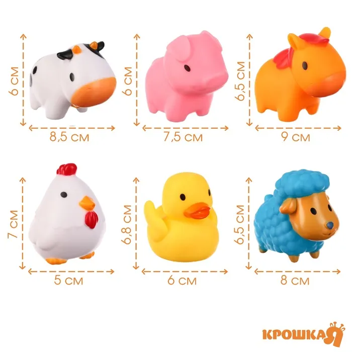 Резиновые игрушки для ванны Крошка Я «Моя ферма», с брызгалкой, в наборе 6 шт., от 3 мес. — Характеристики