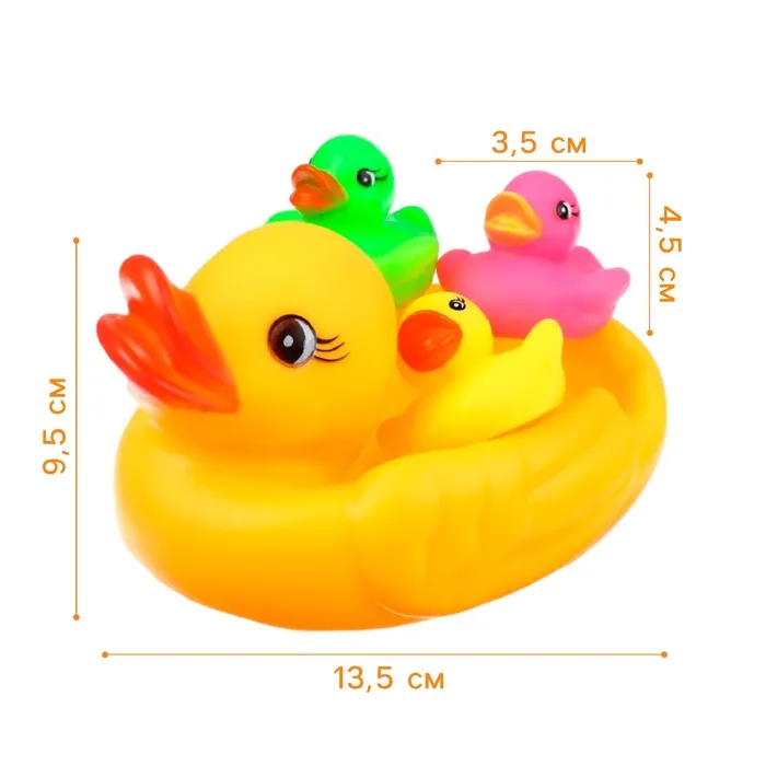 Резиновые игрушки для ванны Крошка Я «Мыльница: Цветные уточки», 13,5 см, с пищалкой, в наборе 4 шт. — Характеристики