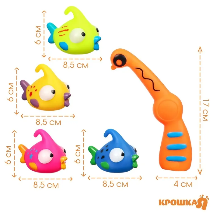 Резиновые игрушки для ванны Крошка Я «Поймай рыбку», в наборе 5 шт., с пищалкой — Характеристики