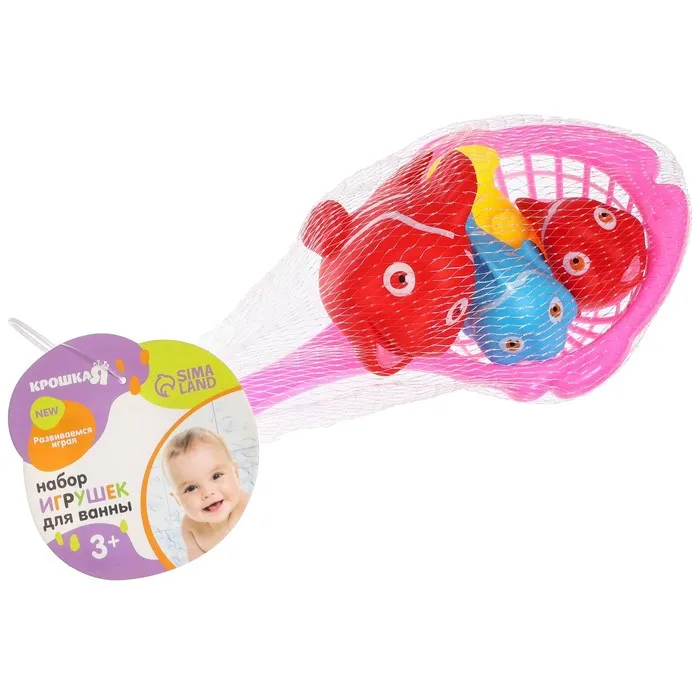 Резиновые игрушки для ванны Крошка Я «Рыбалка с рыбками», в наборе 4 шт., сачок, МИКС — Характеристики