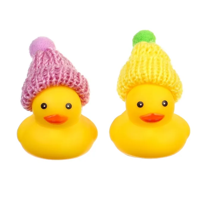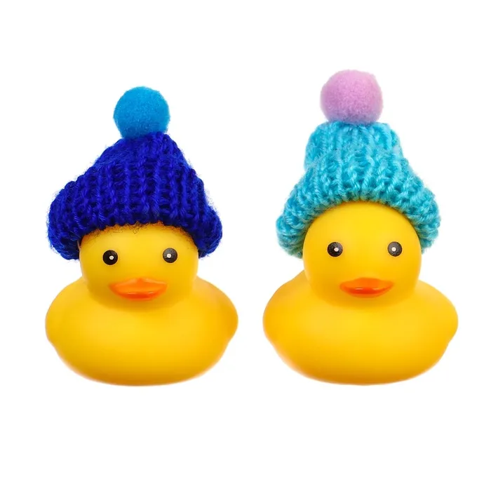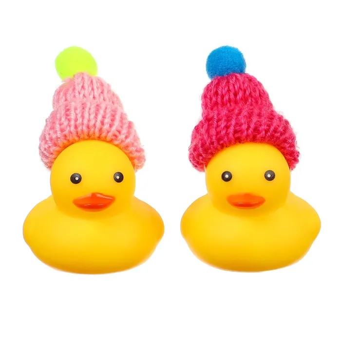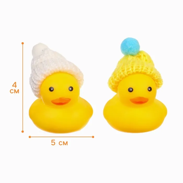 Резиновые игрушки для ванны Крошка Я «Уточки в шапке», 4 см, с пищалкой, в наборе 2 шт. — Характеристики