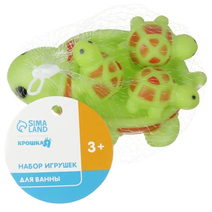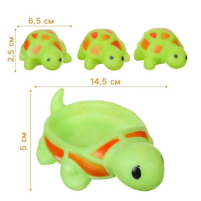 Резиновые игрушки для ванны «Мыльница: Черепаха», 14.5 см, с пищалкой, набор 4 шт., МИКС, Крошка Я — Характеристики