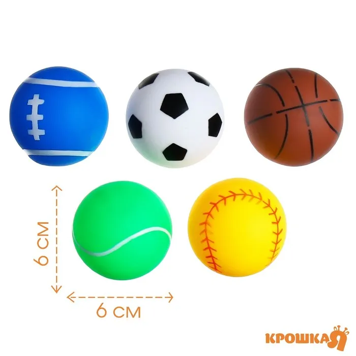 Резиновые мячики Крошка Я «Спорт», с пищалкой, в наборе 5 шт. — Характеристики