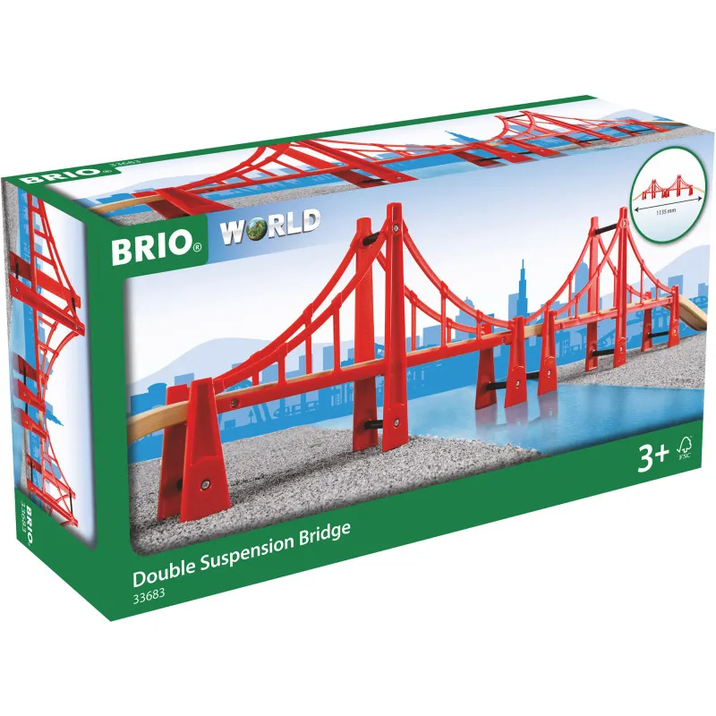 Очень длинный подвесной мост Brio 33683 перенесет ваши поезда в захватывающее путешествие через море! Надежный и устойчивый, этот мост имеет длину 115 см. Вы также можете разделить мост на две отдельные части, создав два отдельных моста.
