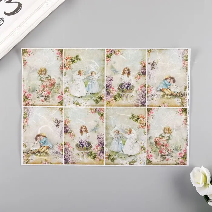 Рисовая декупажная карта «Детки», плотность 25 г/м², формат А4 — Характеристики