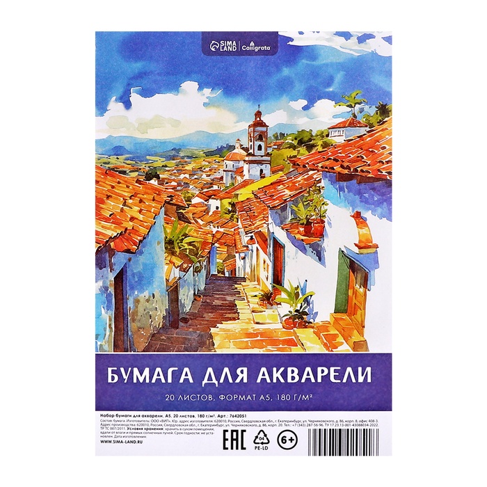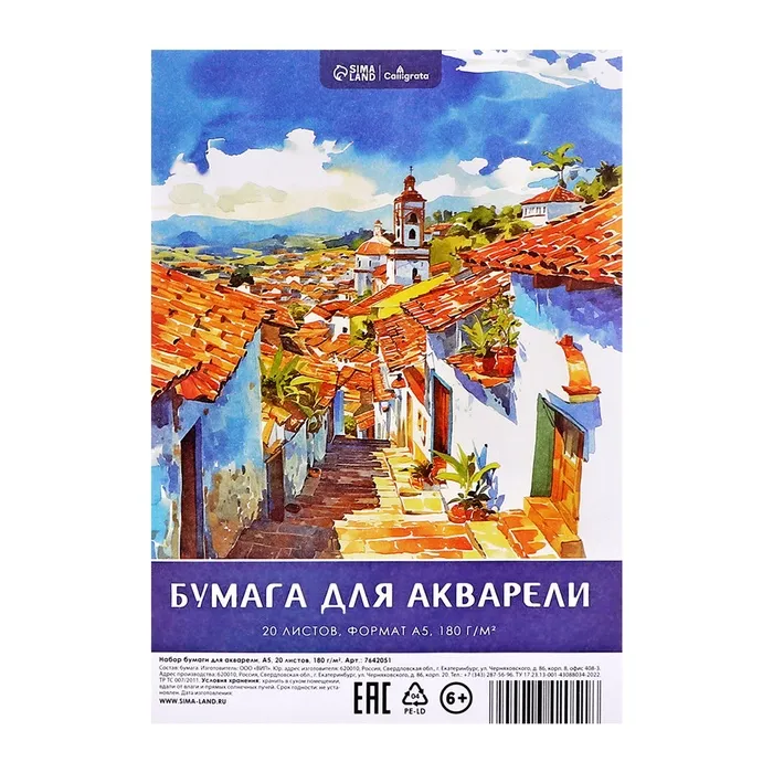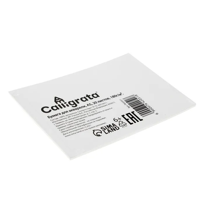 Рисовальная бумага А5, 20 листов Calligrata, блок 180 г/м2, для акварели — Характеристики