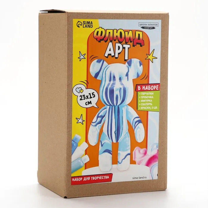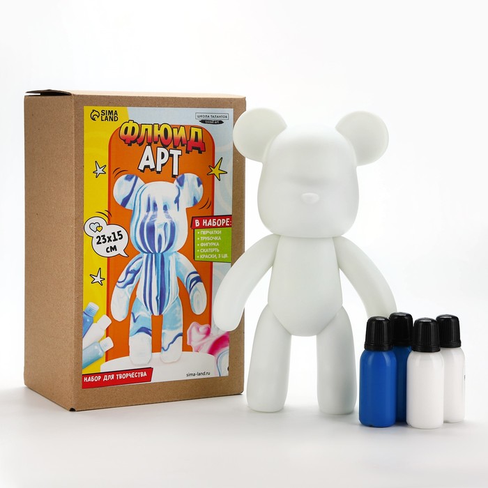 Рисование акрилом на пластиковой фигурке «Мишка», голубой, набор для творчества Флюид-арт — Характеристики