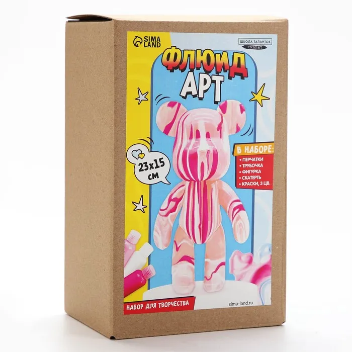Рисование акрилом на пластиковой фигурке «Мишка», розовый, набор для творчества Флюид-арт — Характеристики
