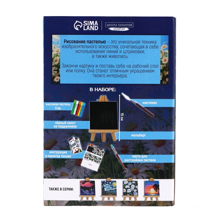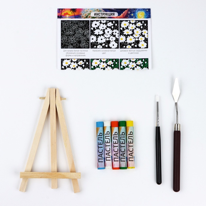 Рисование пастелью c холстом на подрамнике «Ромашки», набор для творчества — Характеристики