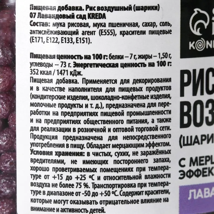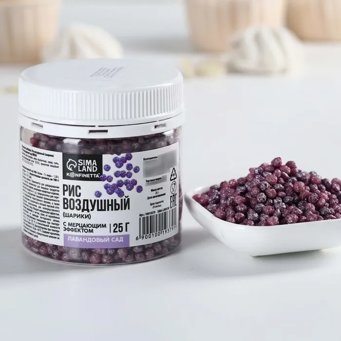 Рисовые шарики блестящие «Фиолетовые» для капкейков и тортов, 25 г. — Характеристики
