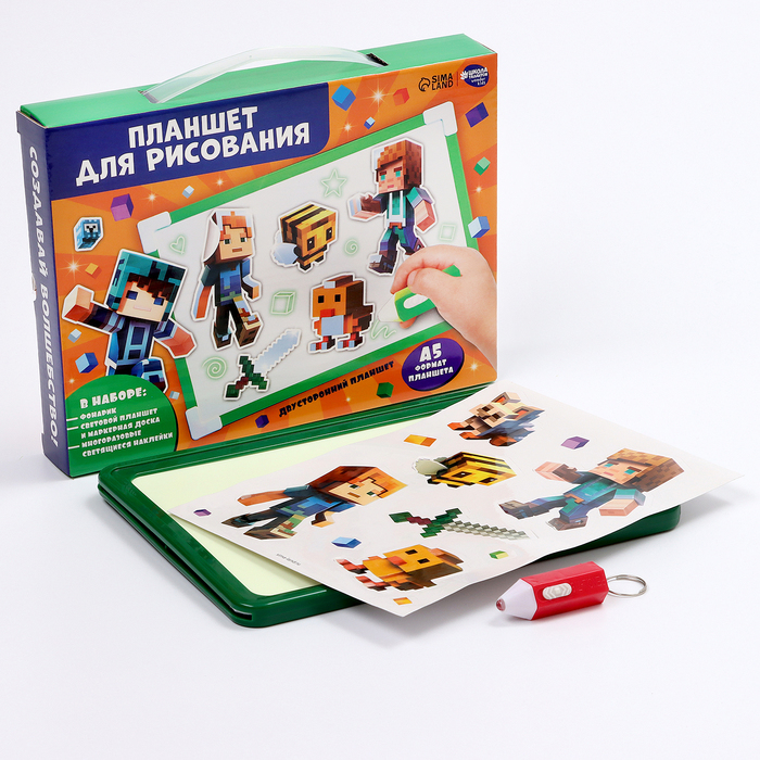Рисуем светом. Набор для рисования в темноте «Игровой мир», зелёный, А5 — Характеристики