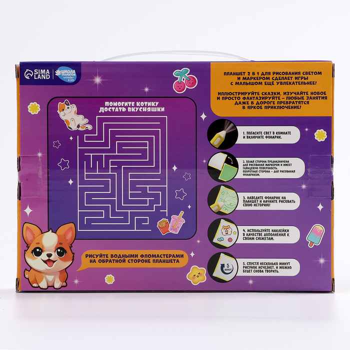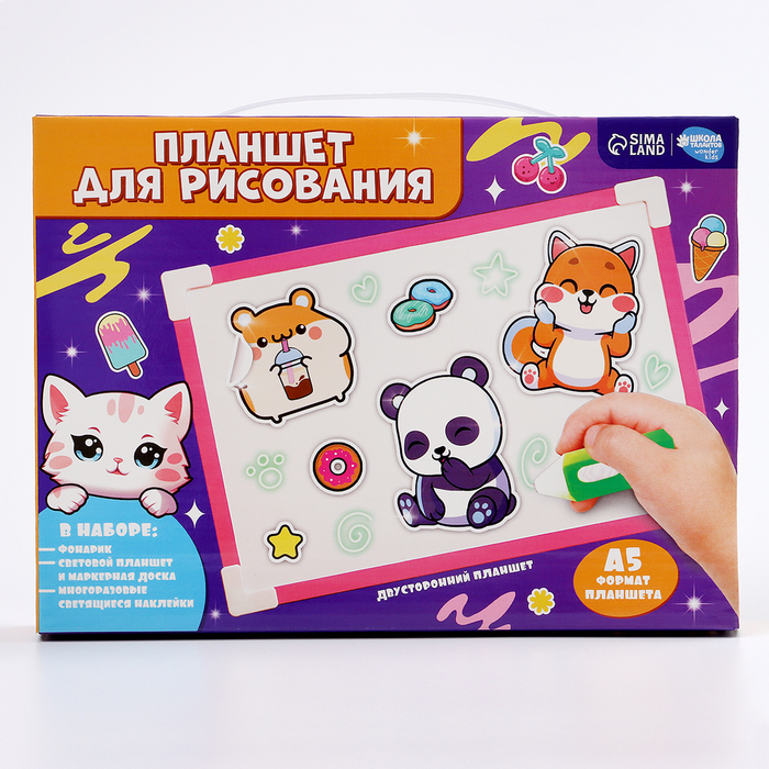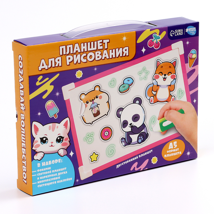 Рисуем светом. Набор для рисования в темноте «Милые звери», А5 — Характеристики